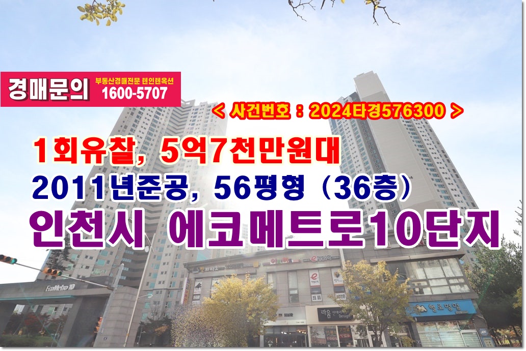 5억7천만원대 - 인천 남동구 논현동 에코메트로10단지 한화꿈에그린아파트경매